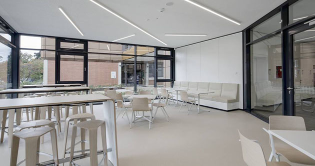 gemeinsames Eingangsfoyer für beide Schulen, 21 Klassenzimmer, 3 Differenzierungsräume, Schüleraufenthaltsraum, 2 Abteilungsleitungsbüros, WCs, Technikräume
